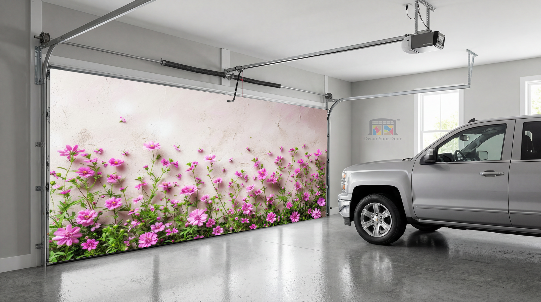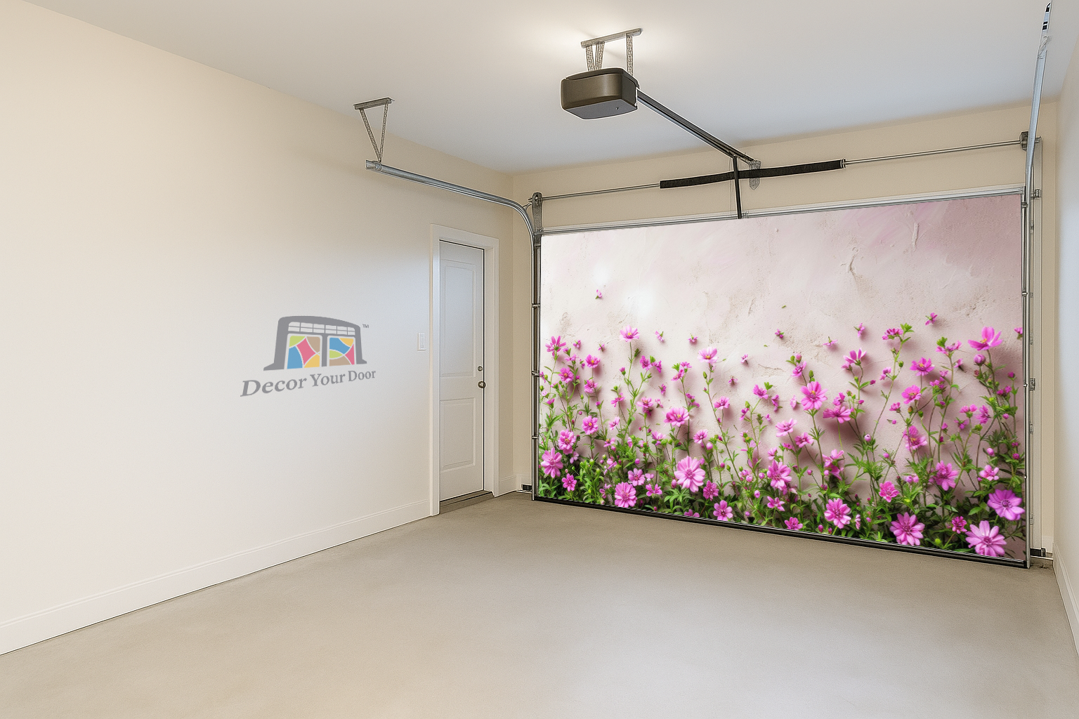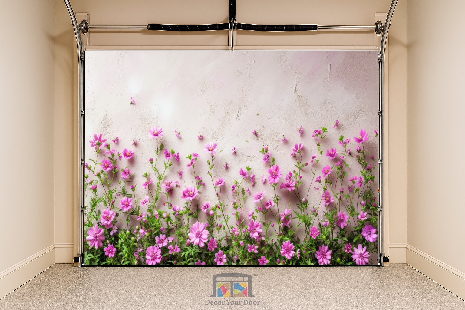 Brighten your home with the gentle beauty of the Blossom Charm Interior Garage Door Cover by Decor Your Door. Featuring a row of delicate pink blooms rising against a soft pastel wall, this design brings a touch of spring serenity to any interior. Perfect for adding freshness and charm, it transforms your garage into a peaceful, uplifting space filled with natural warmth and floral elegance.