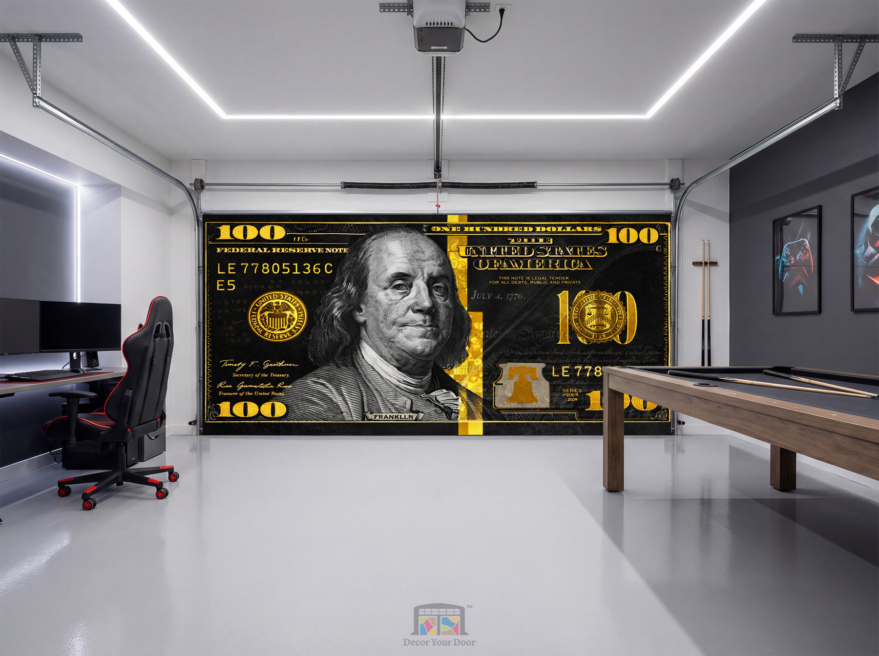 100 Dollar Bill Power – Game Room Interior Garage Door Cover