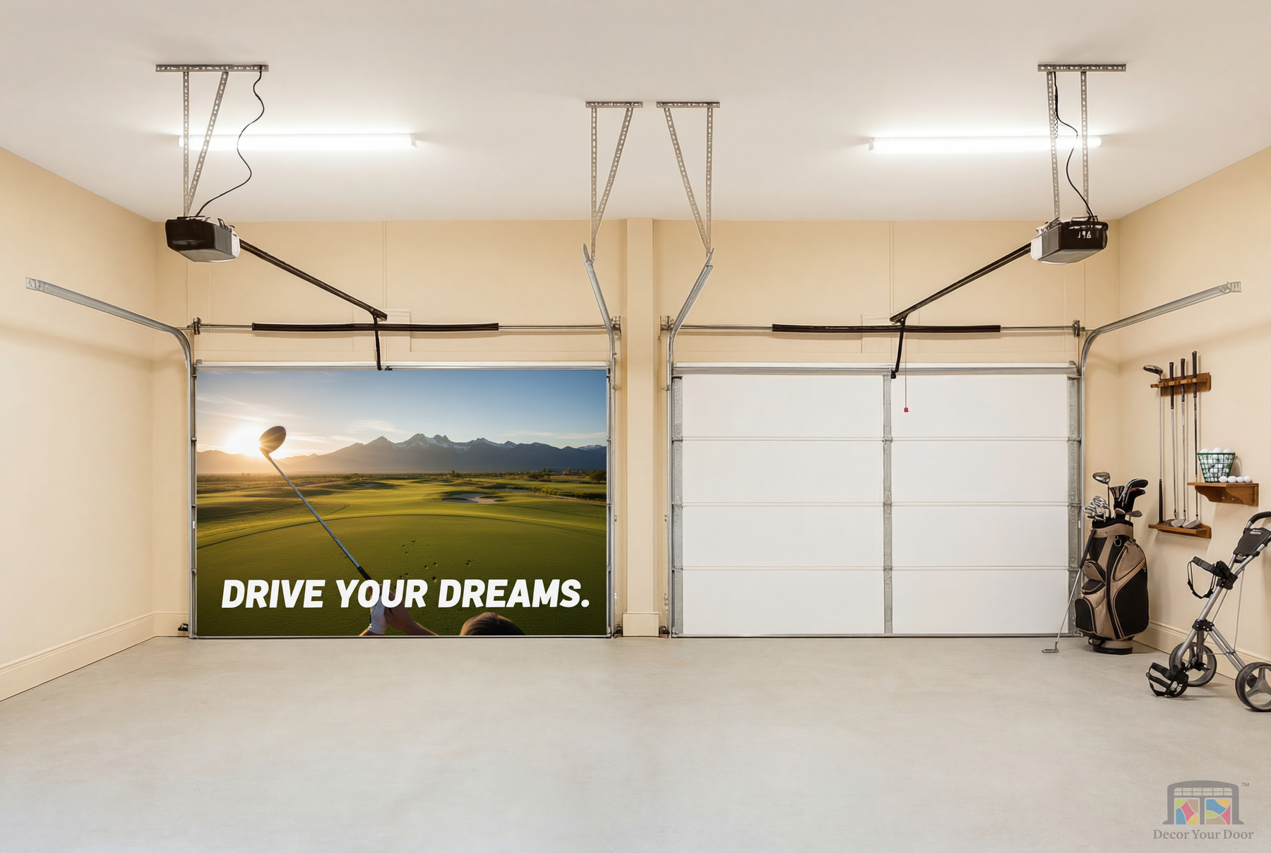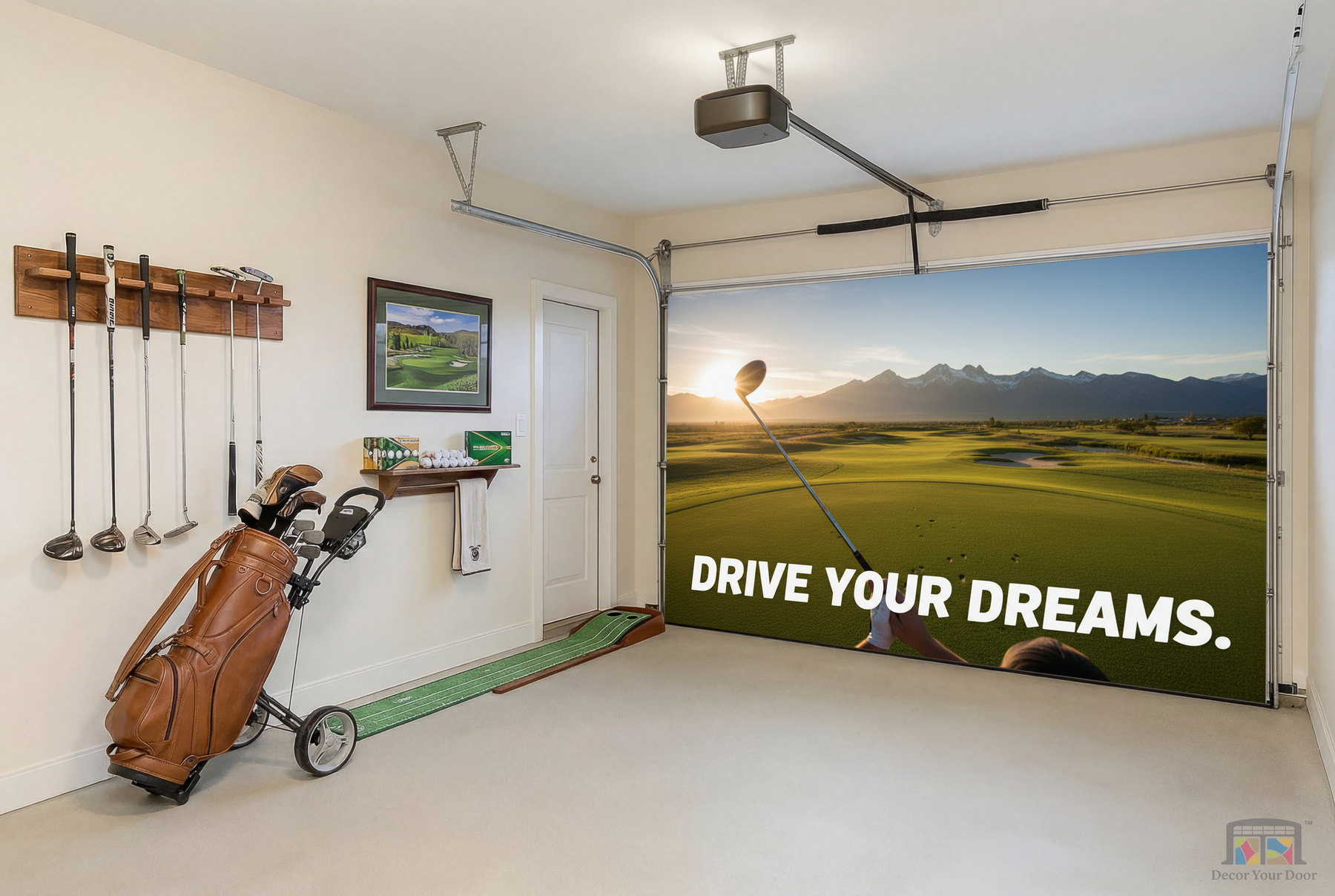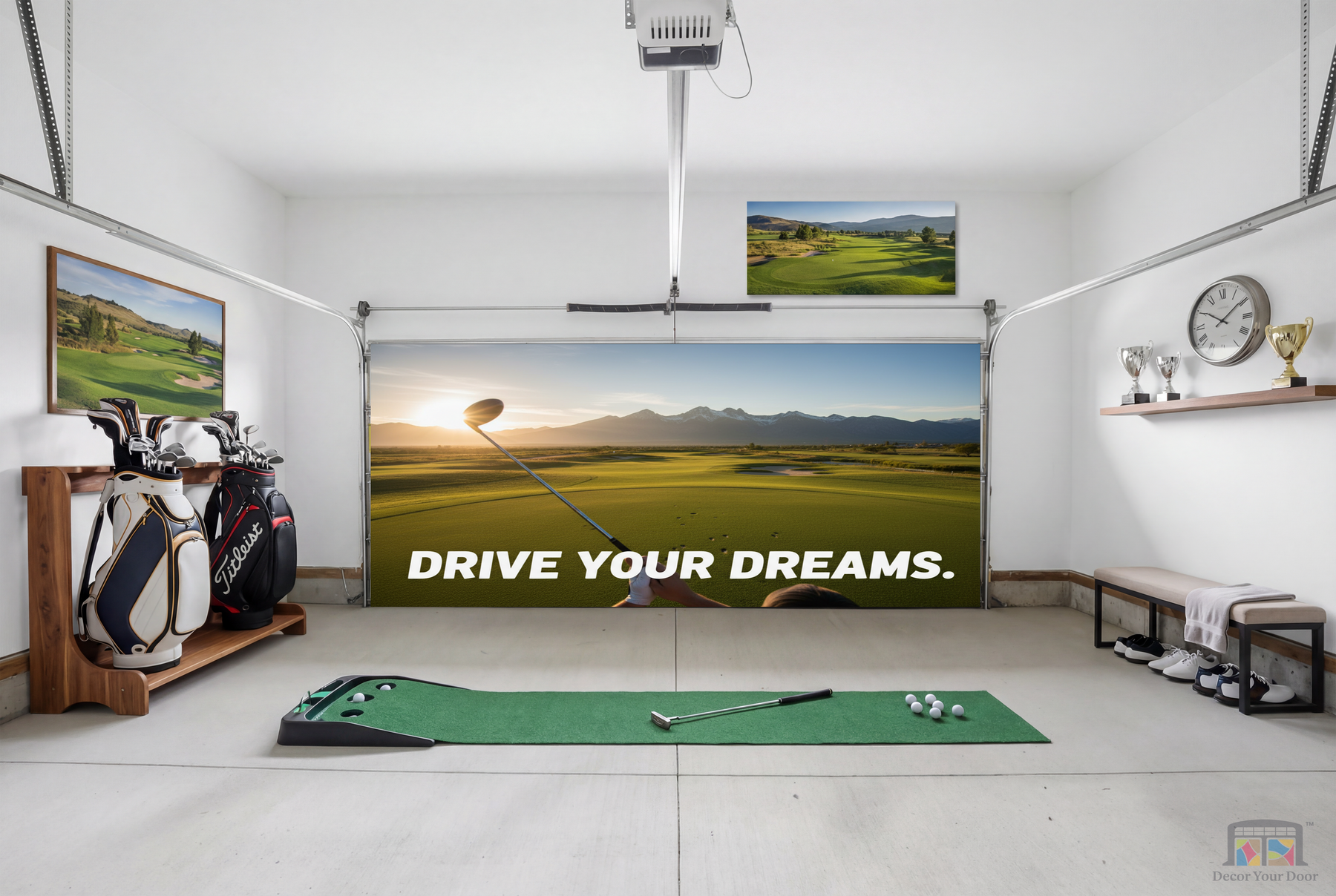 Bring the excitement of the perfect swing into your garage with Ready to Swing by Decor Your Door. This dynamic, ultra realistic golf scene captures the energy of sunrise on the course and adds depth, brightness, and motivation to any space. Easy to install and stunning to display, it is the ideal upgrade for golfers who want their garage or home gym to feel bold, modern, and inspiring every day.