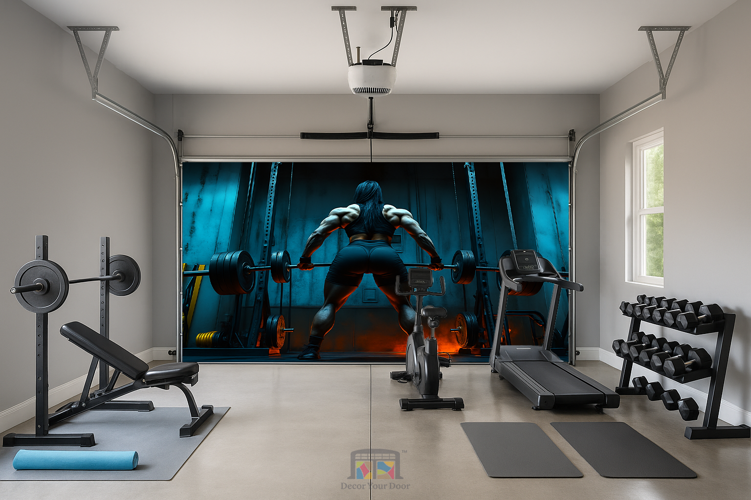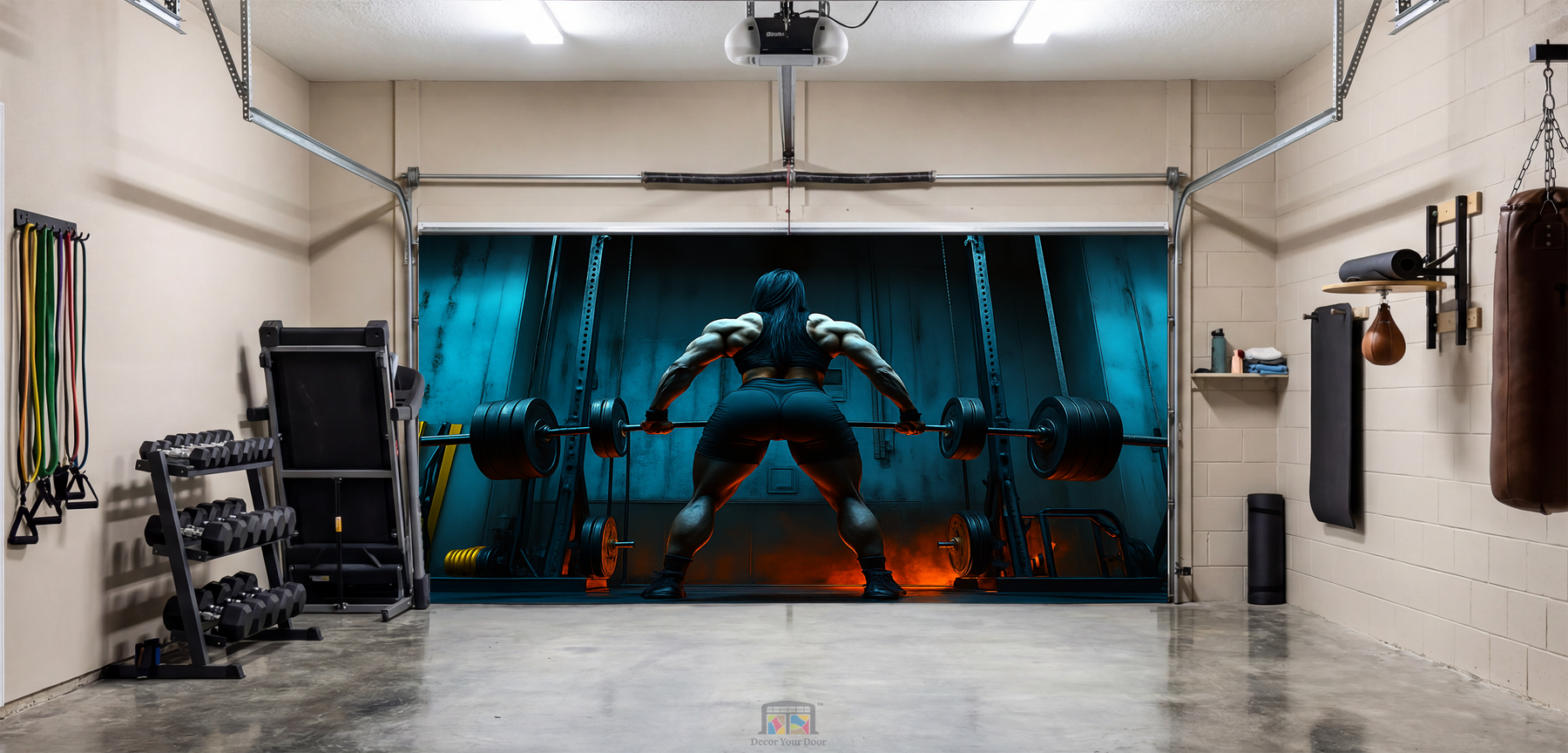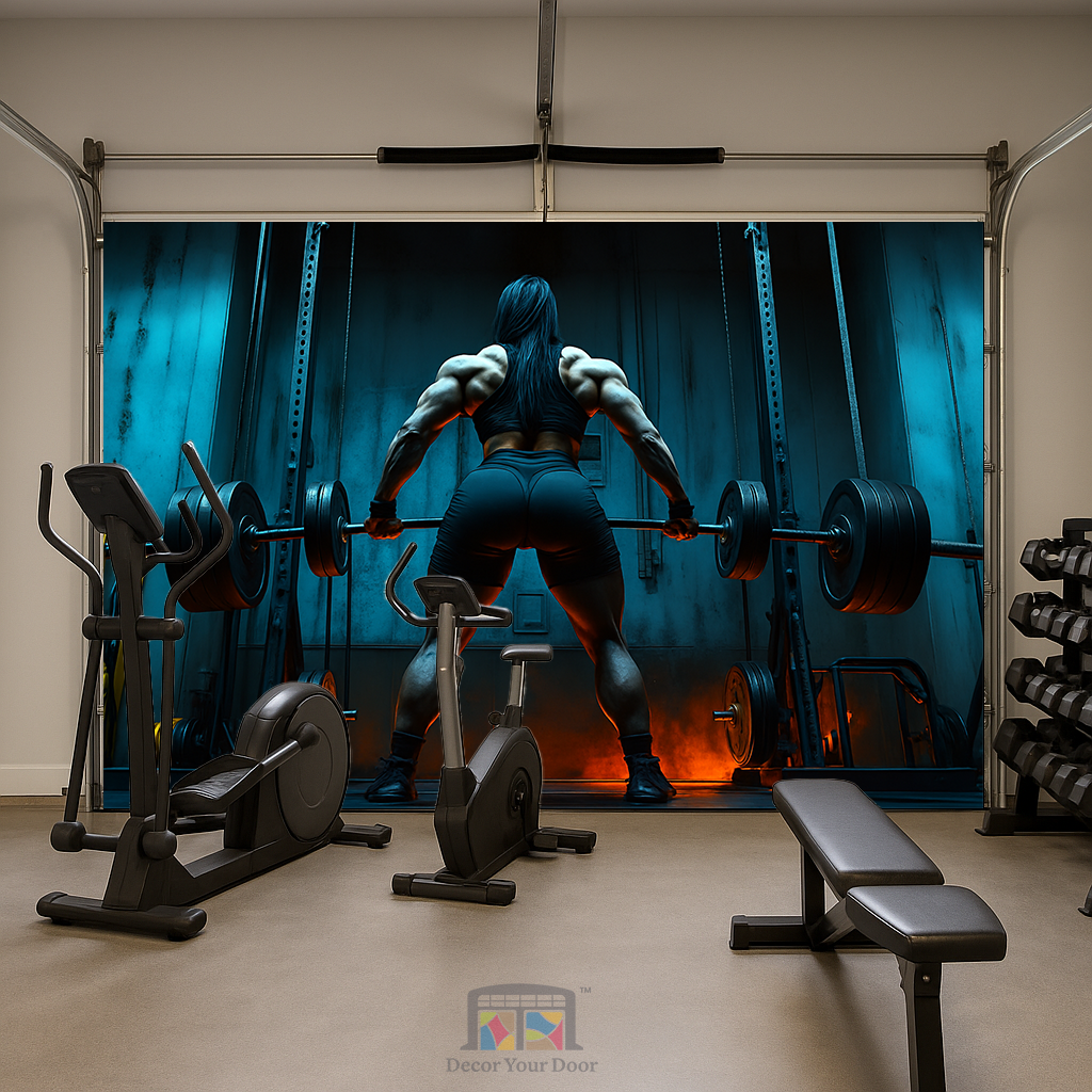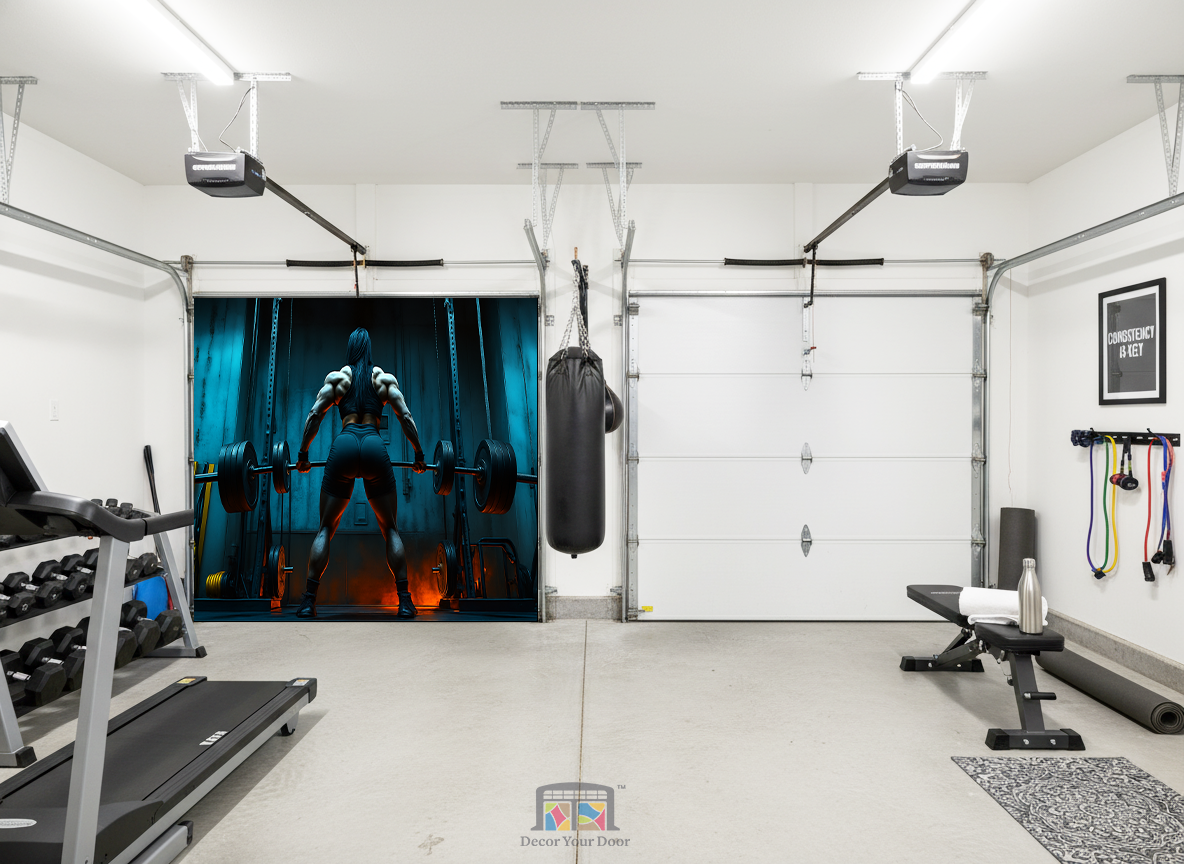 Ignite your drive every time you step into the garage. This high-energy fitness design from Decor Your Door showcases unmatched strength and determination, turning your space into a motivational powerhouse. Bold lighting, intense focus, and a powerful stance create the perfect atmosphere for pushing limits and staying committed to your goals.