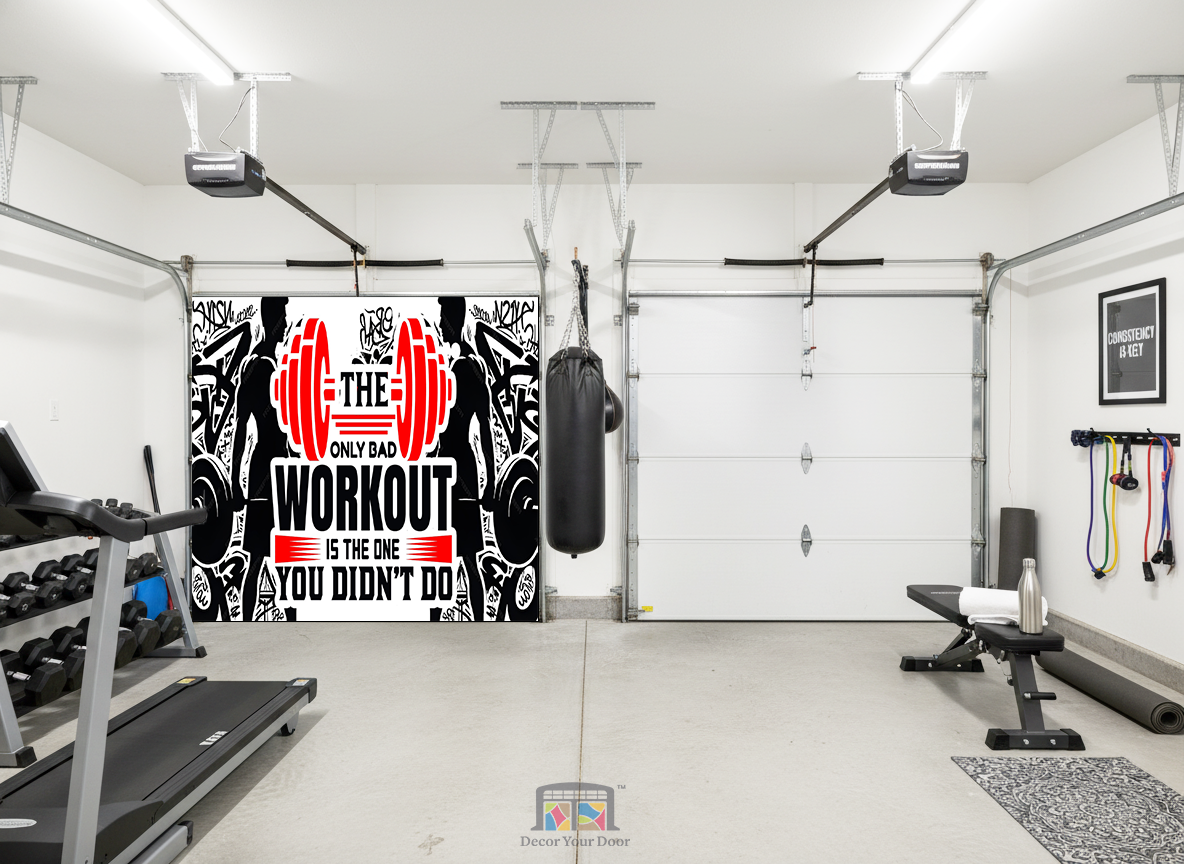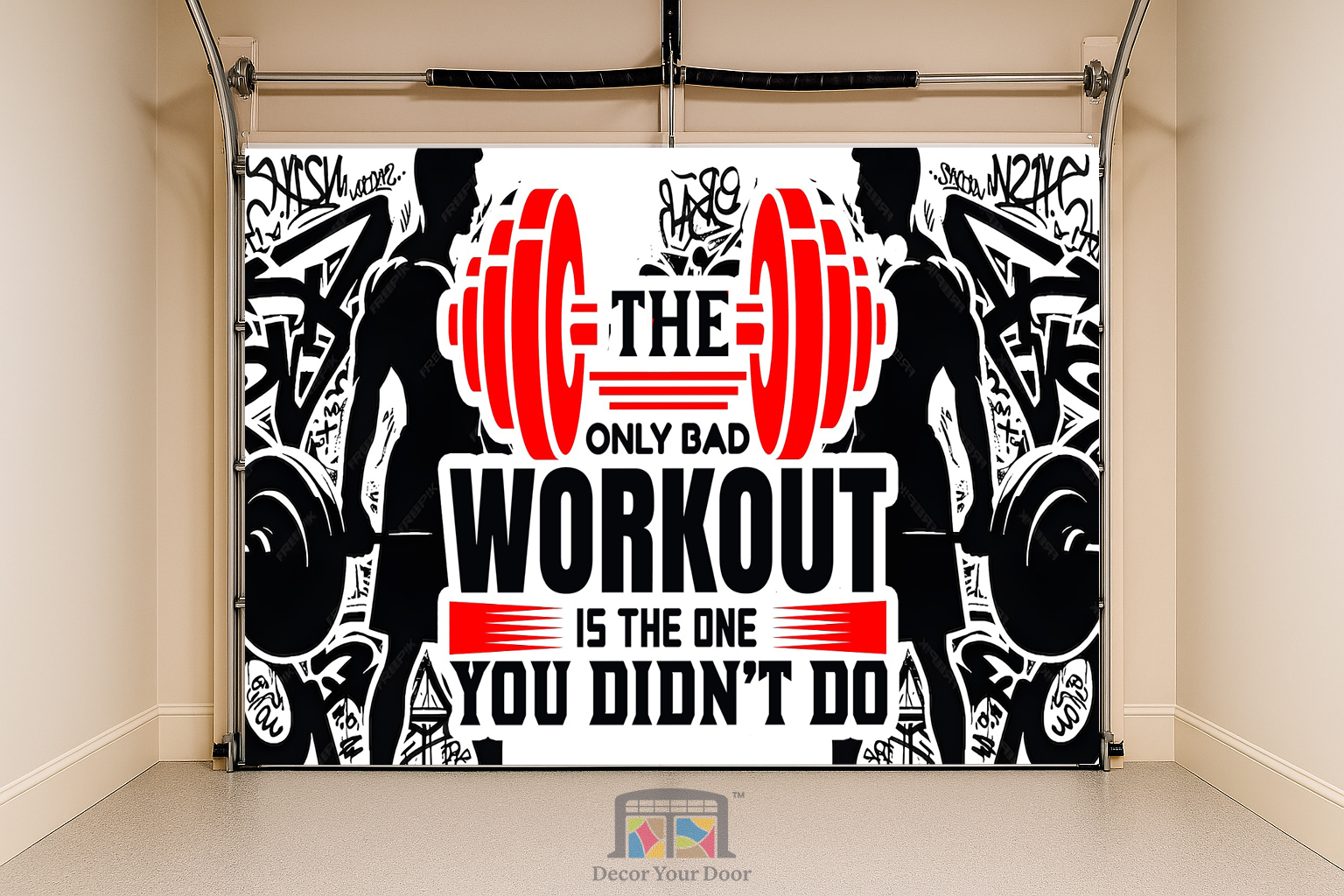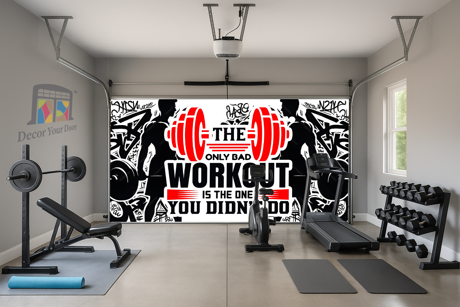 Bring unstoppable energy to your training space with the “The Only Bad Workout” – Motivation Interior Garage Door Cover by Decor Your Door. Designed with bold graffiti-inspired art and vibrant red accents, it reminds you that showing up is the hardest part—and the most important one. Made from premium wrinkle-resistant fabric, it installs easily and adds a professional fitness vibe to any home gym or garage.