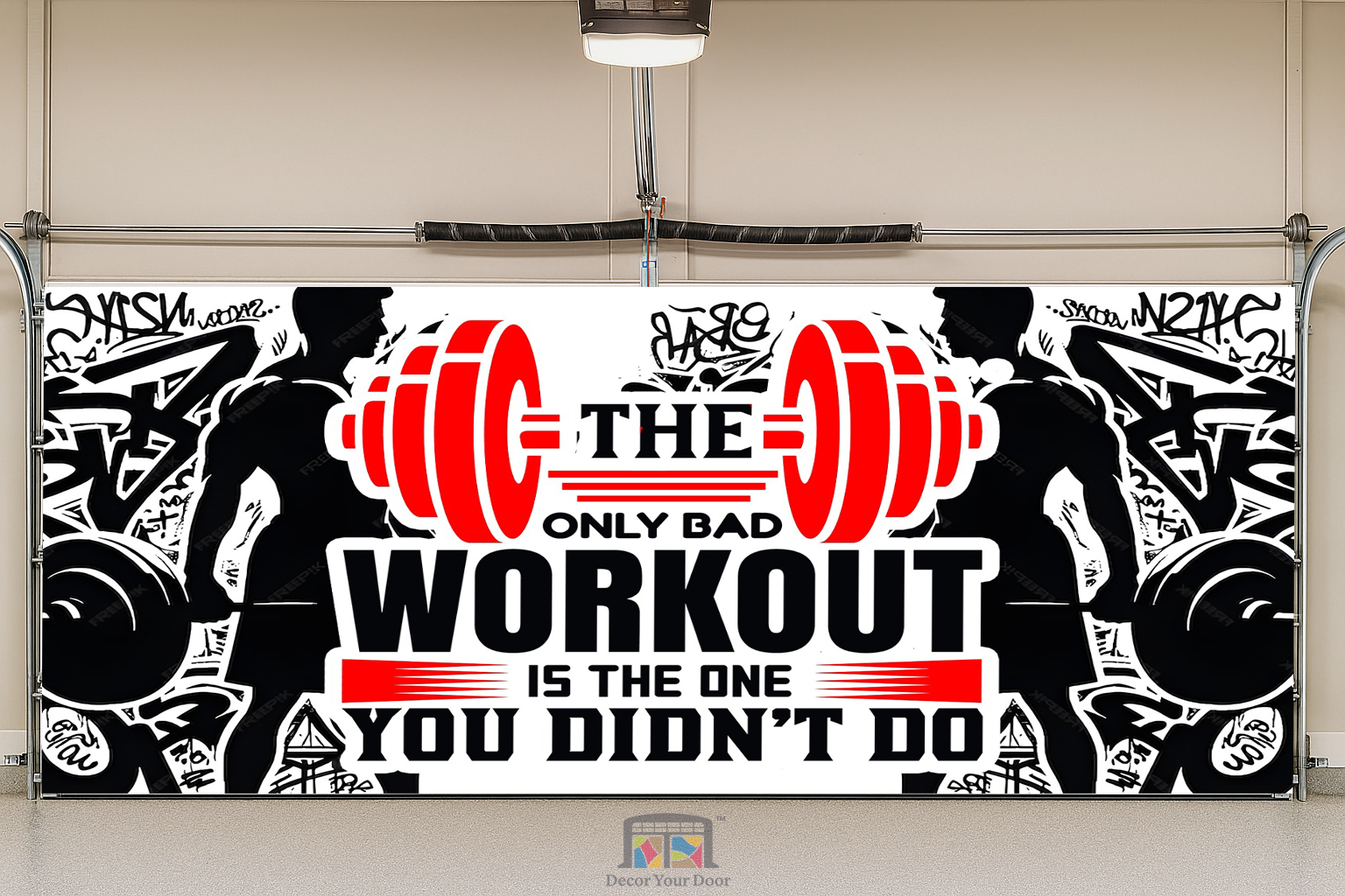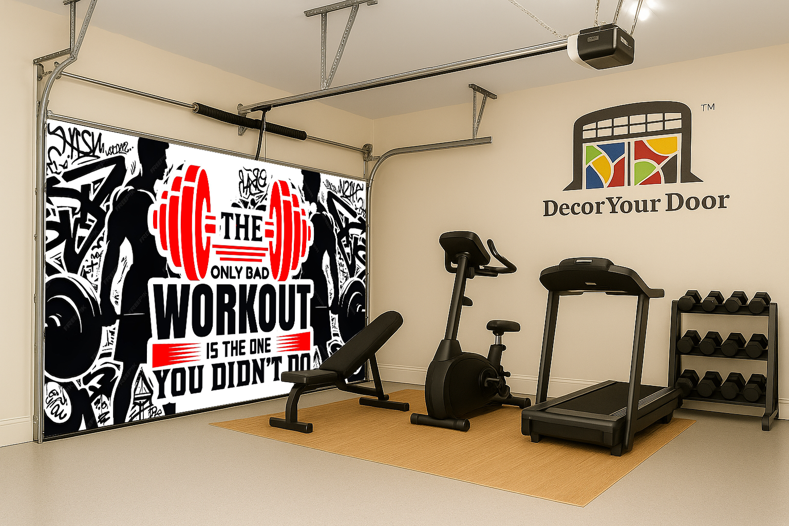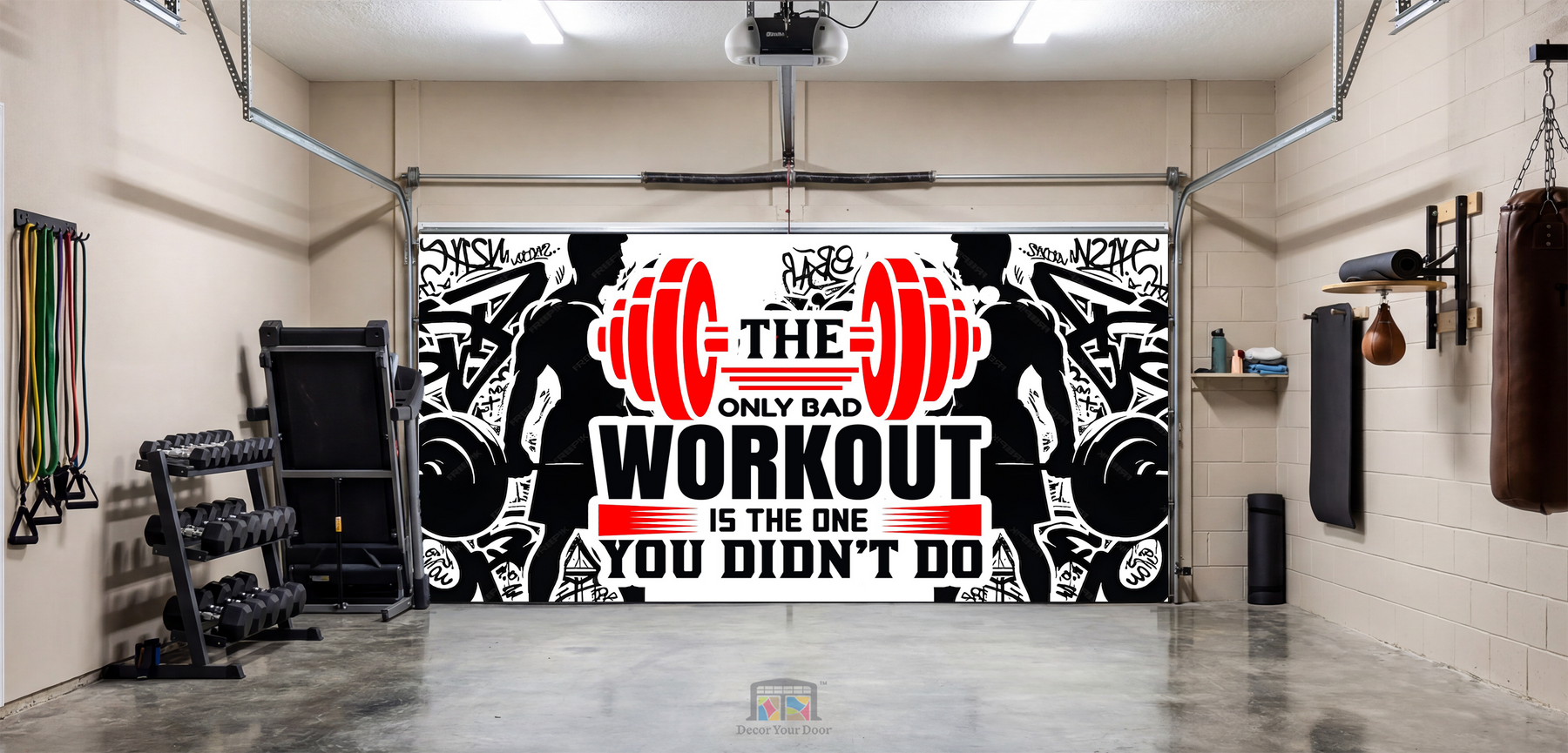 Bring unstoppable energy to your training space with the “The Only Bad Workout” – Motivation Interior Garage Door Cover by Decor Your Door. Designed with bold graffiti-inspired art and vibrant red accents, it reminds you that showing up is the hardest part—and the most important one. Made from premium wrinkle-resistant fabric, it installs easily and adds a professional fitness vibe to any home gym or garage.