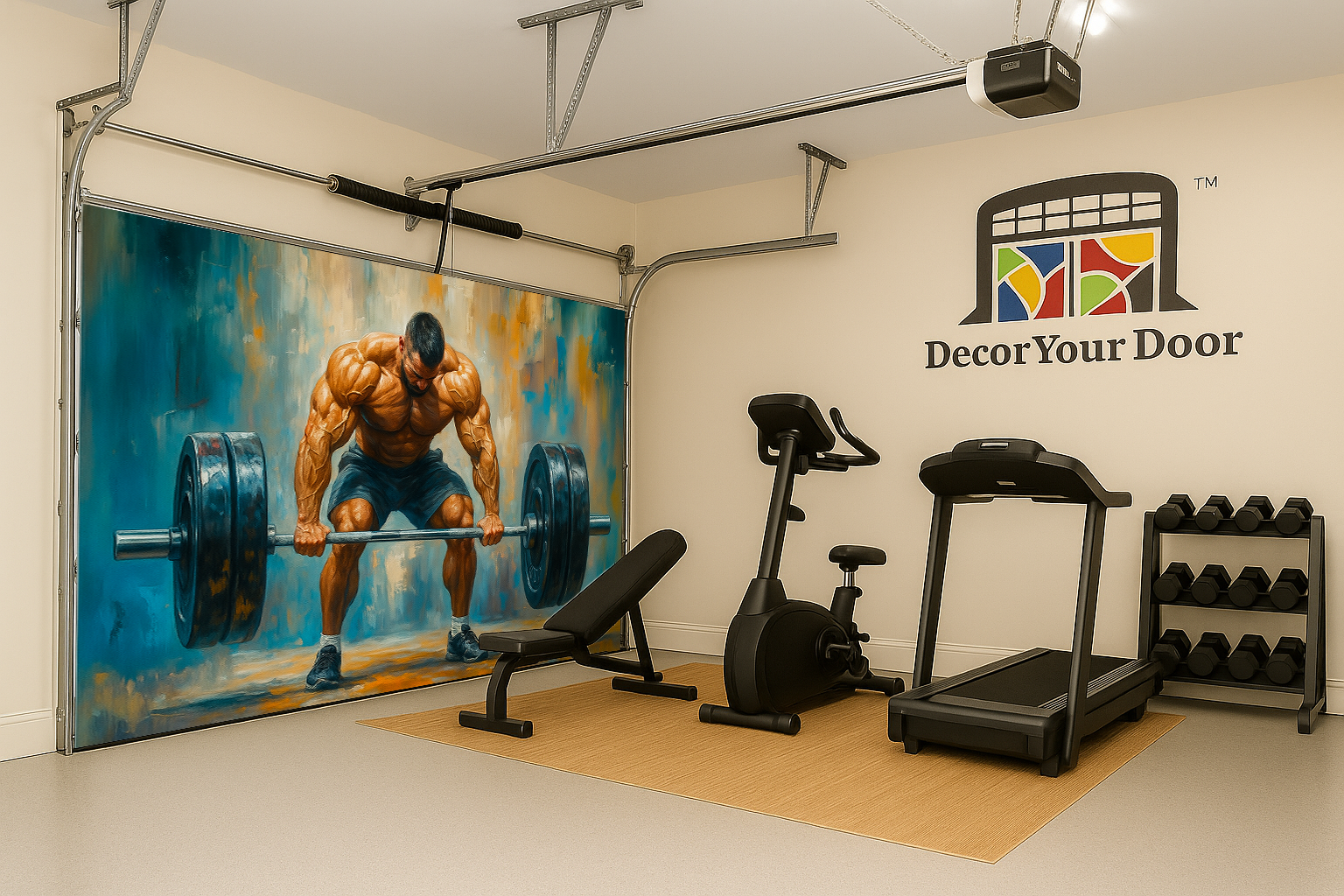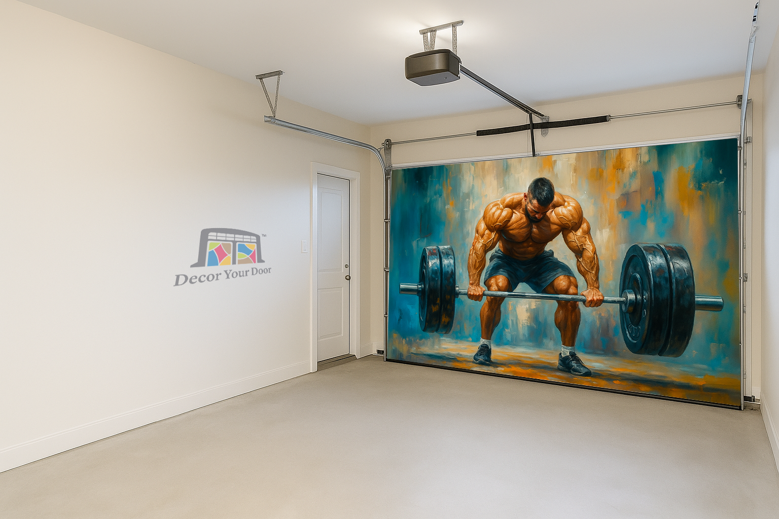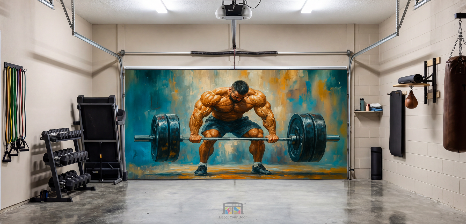 Fuel your training zone with unstoppable intensity using Unbreakable Lift by Decor Your Door. This commanding artwork features a powerful athlete locked into a heavy deadlift, every muscle sculpted and flexed with absolute precision. The dynamic mix of warm and cool brushstrokes creates an explosive backdrop that amplifies the strength, discipline, and grit in the scene. Printed in ultra-high resolution on durable, weatherproof material, this garage door cover transforms your space into a high-energy gym environment that pushes you to lift harder and rise stronger every single day.