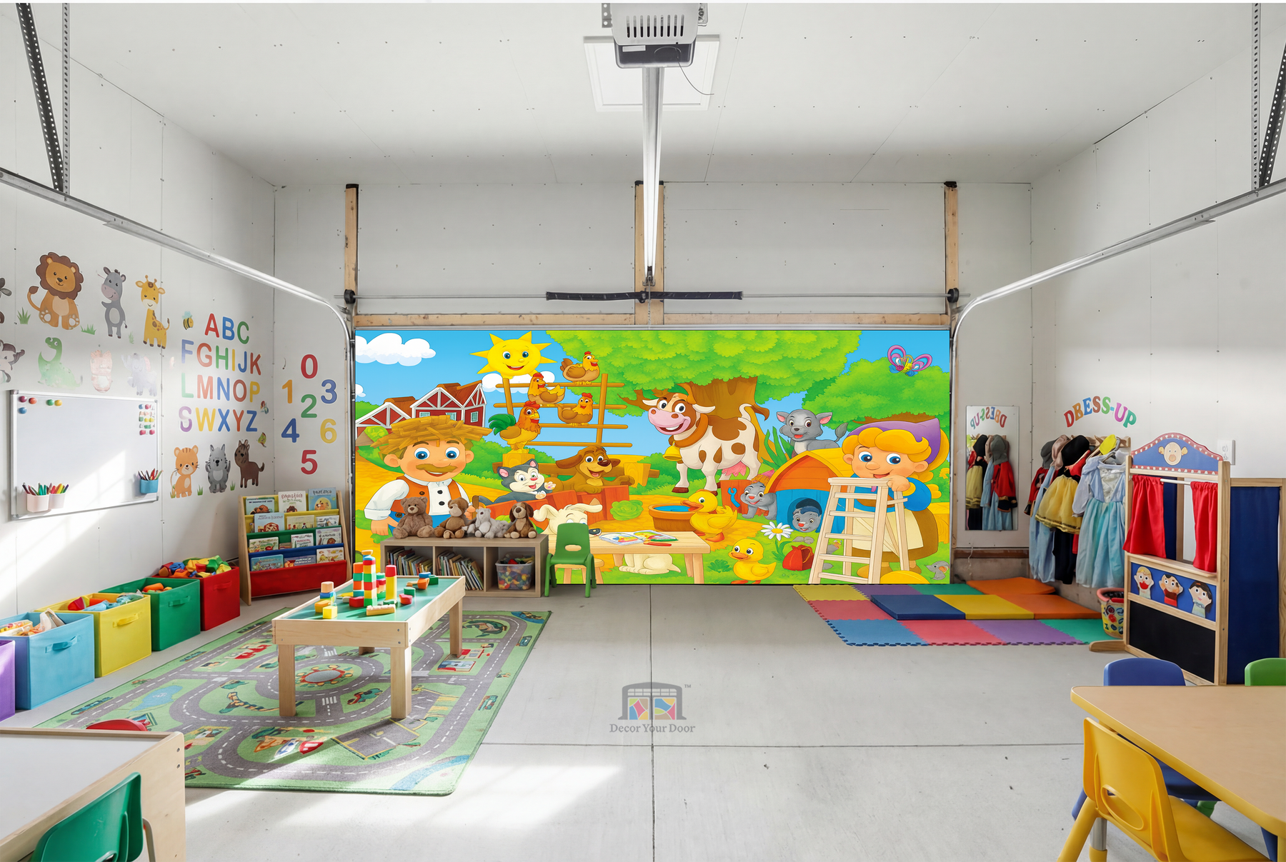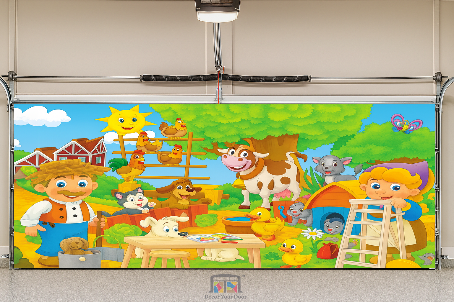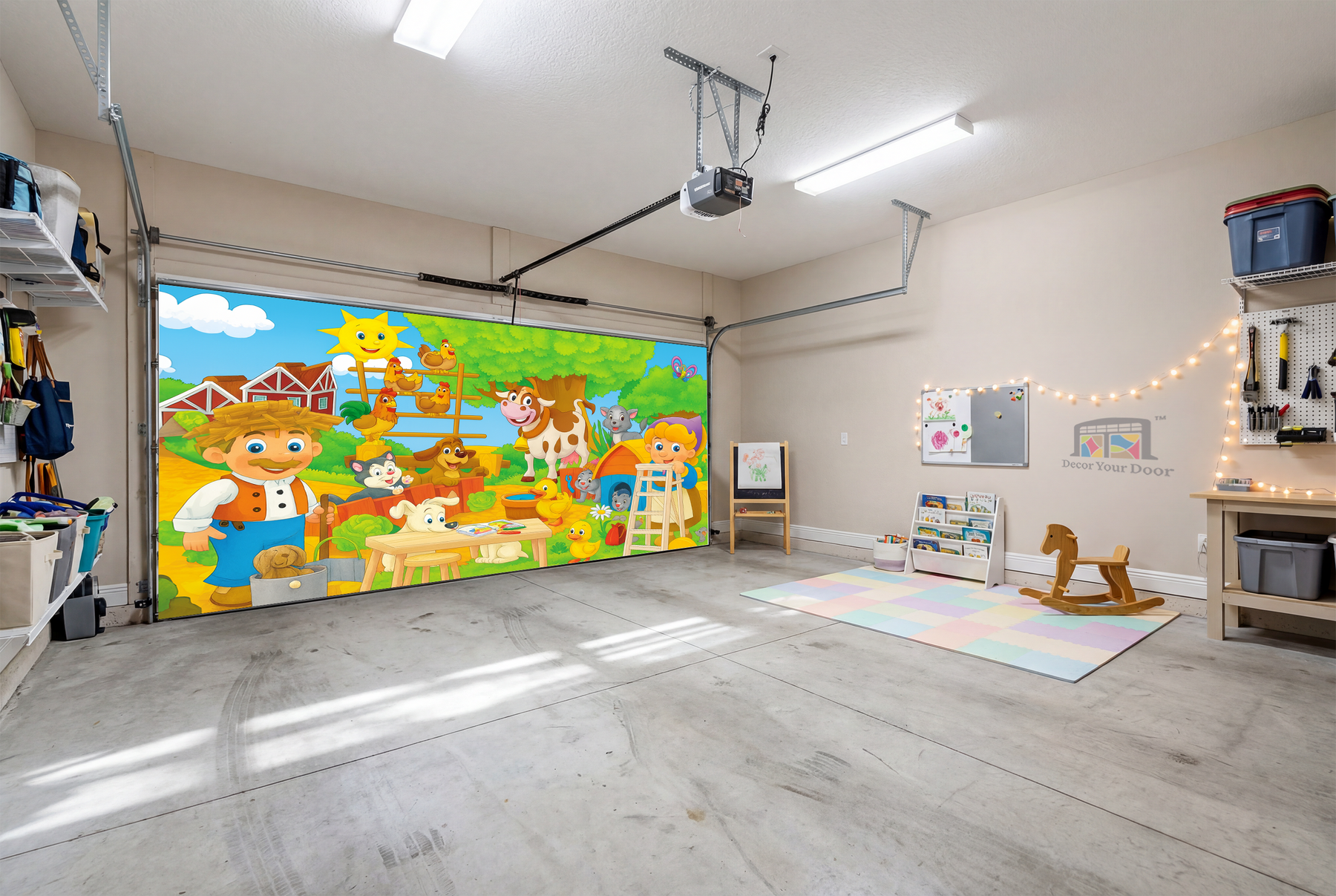 Step into a cheerful country day with Farmyard Friends by Decor Your Door. This bright and playful scene features friendly farm animals, smiling characters, and a colorful outdoor setting that sparks imagination and laughter. Perfect for nurseries, playrooms, and kids who love animals or storybook adventures. Attach it to your garage door and instantly create a fun farm world right at home.