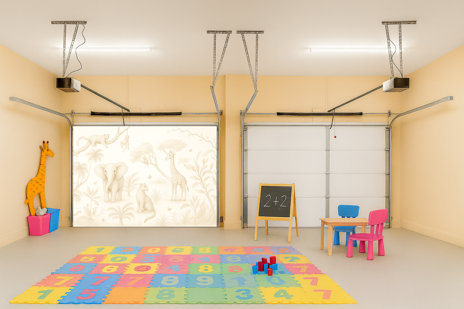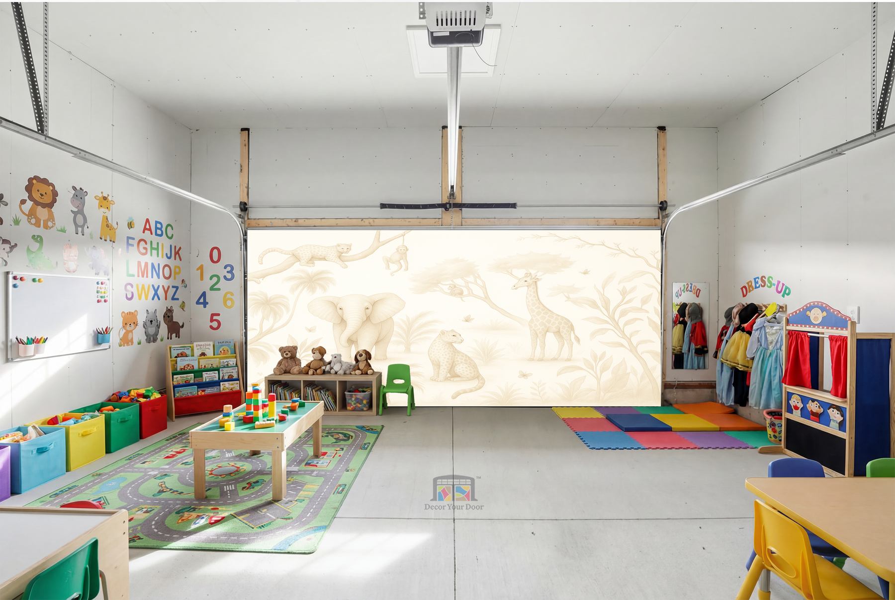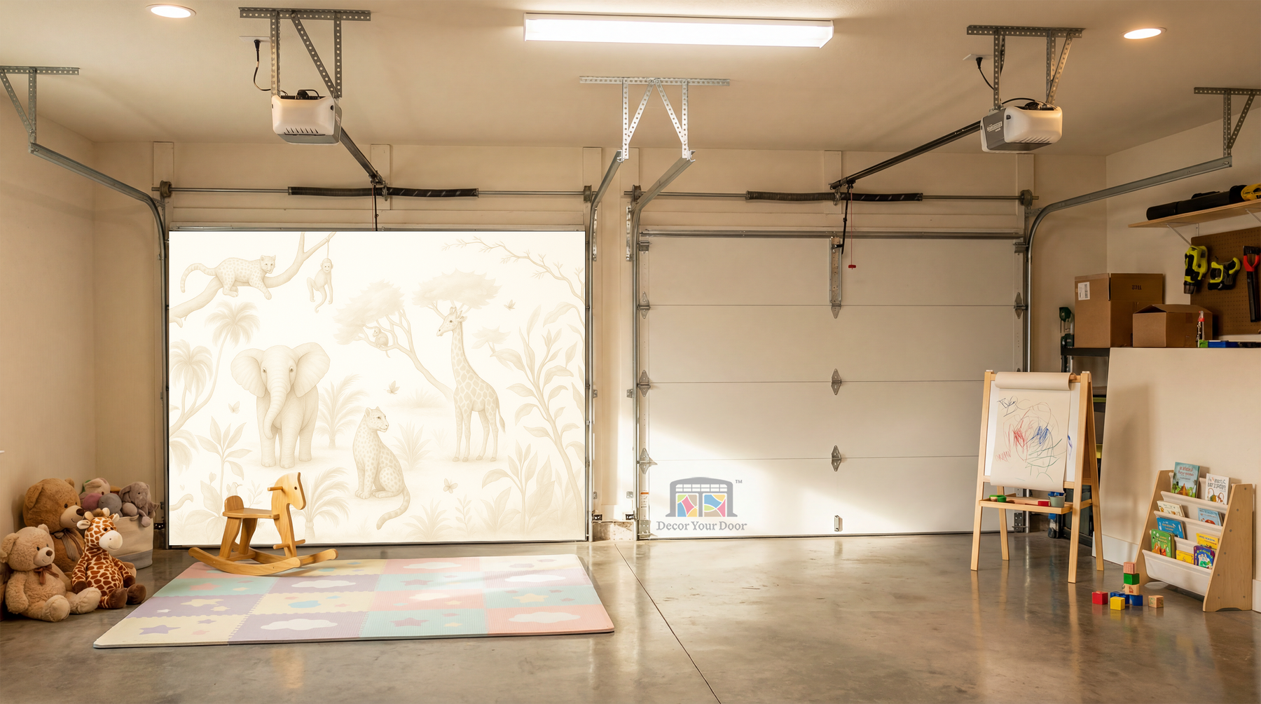 Bring soft safari charm into your home with the Safari Daydream cover by Decor Your Door. This sepia-toned wildlife mural creates a peaceful atmosphere, perfect for nurseries, play areas, and cozy family spaces. Designed to blend naturally with any décor, it turns your garage interior into a warm and welcoming environment with a premium finish.