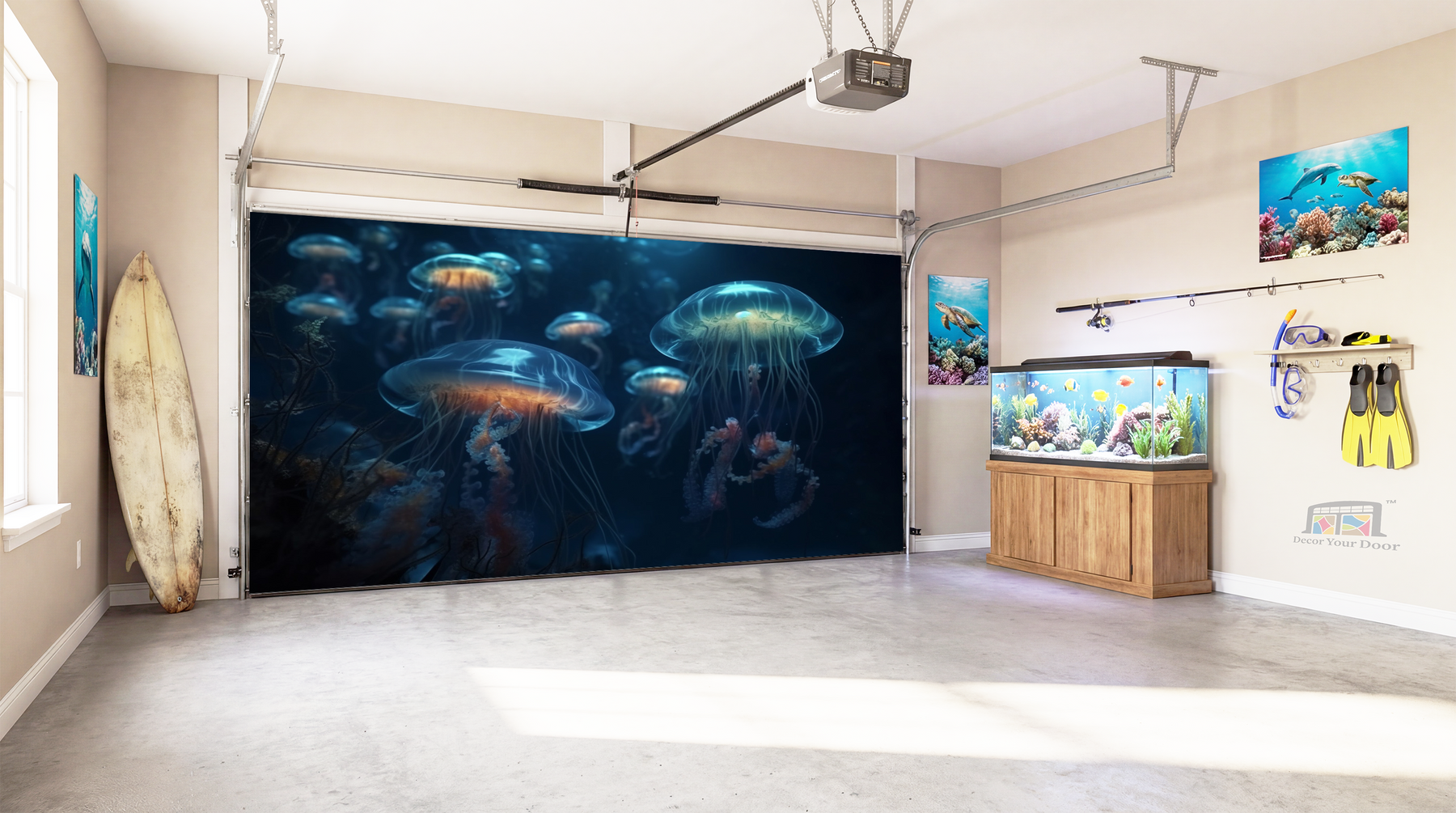 Designed by Decor Your Door to transform any plain garage into a peaceful marine escape that feels alive and full of motion. Turn your garage into a relaxing ocean tunnel and let every entrance feel like a deep-sea drift.