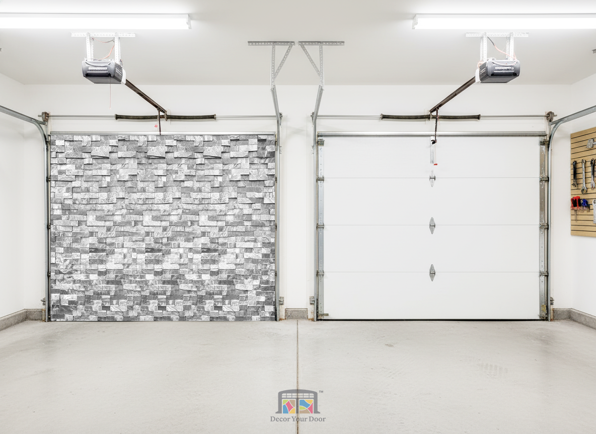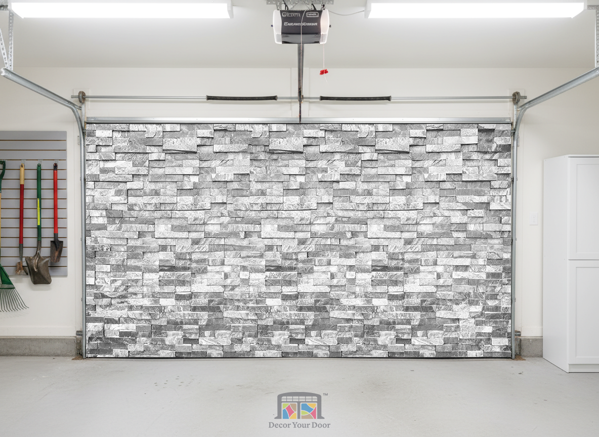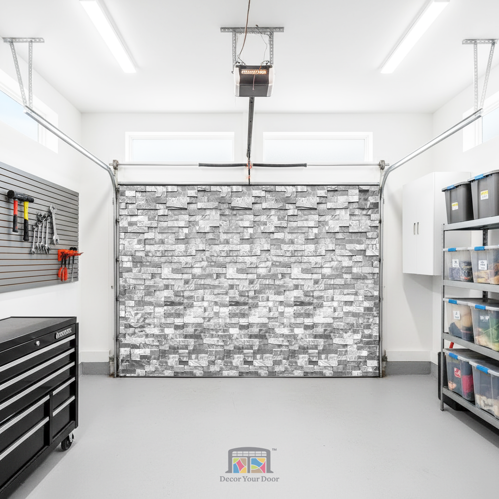 Add a sleek architectural feel to your garage with the Modern Gray Stone Wall cover by Decor Your Door. This refined stone texture blends cool gray tones with a stacked contemporary pattern, creating a clean and stylish backdrop for any space. Ultra realistic and easy to install, it delivers the look of premium stonework without construction or cost. A perfect upgrade for anyone wanting a modern, polished atmosphere.
