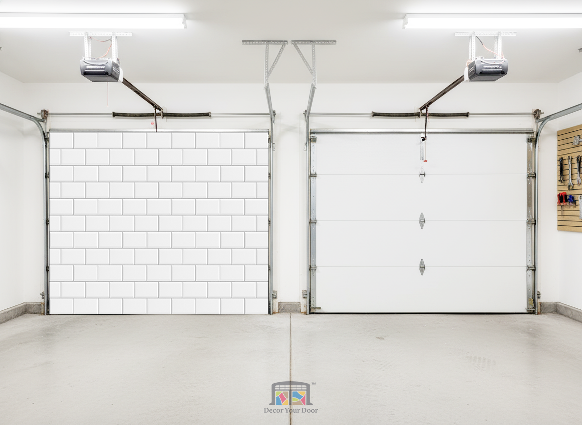 Create a clean, modern look in your garage with the Tile Wall cover by Decor Your Door. This ultra realistic tile texture adds brightness, simplicity, and a polished finish to any space. It delivers the feel of a fresh renovation without the work. Easy to install, premium in appearance, and perfect for anyone who wants a sleek, stylish upgrade.