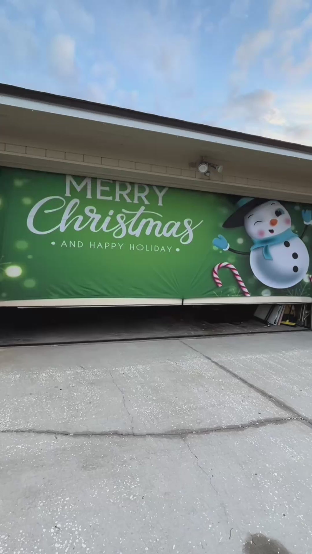 Disfruta de la magia de la Navidad con nuestro vinilo para puerta de garaje con muñeco de nieve navideño sobre fondo verde . Hecho de 100% poliéster, este encantador vinilo da vida a un alegre muñeco de nieve en tu puerta. Comparte la alegría y crea un ambiente festivo con esta encantadora decoración para puerta de garaje. #viniloparapuertadegaraje #banderínparapuertadegaraje #decoracióndepuertadegaraje