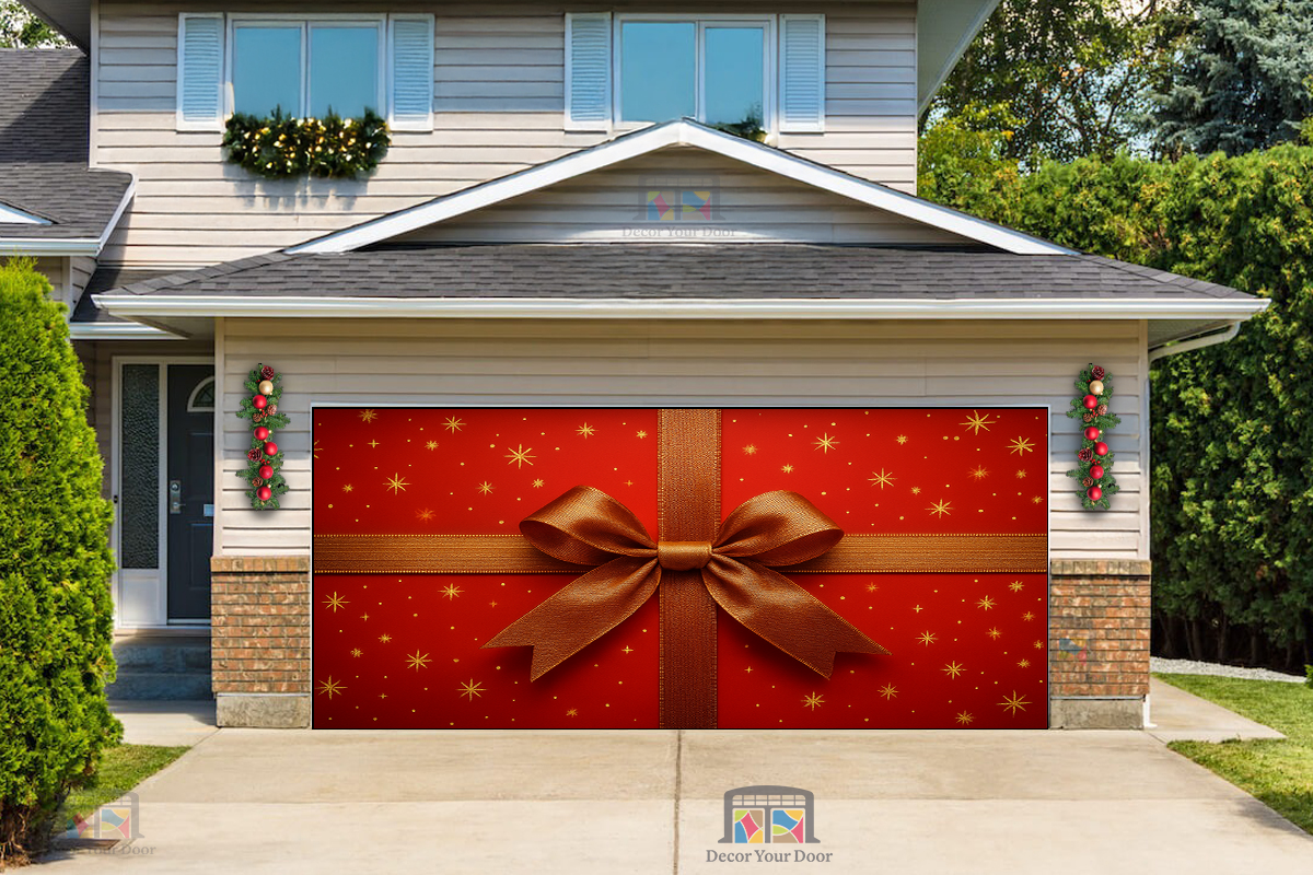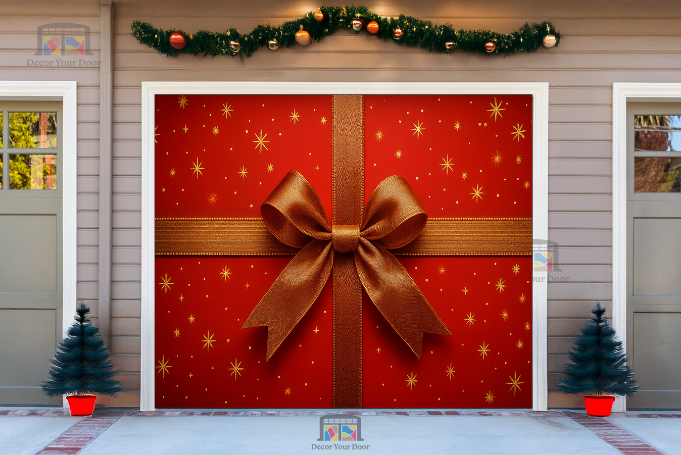 Maravilla de Cinta Roja – Cubierta Navideña para Puerta de Garaje