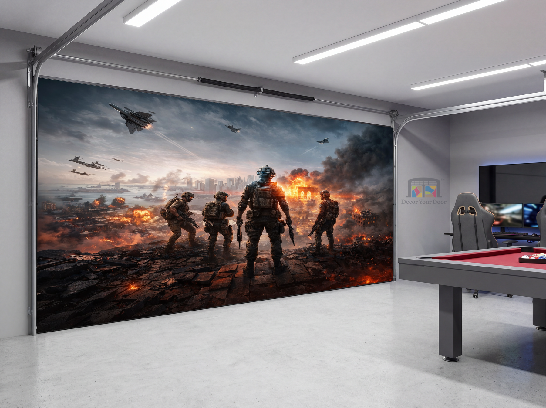 Turn your garage into a cinematic battlefield with Last Stand Uprising. This intense, action-packed design captures the feeling of a high-stakes mission, epic teamwork, and explosive moments straight out of a modern war game.