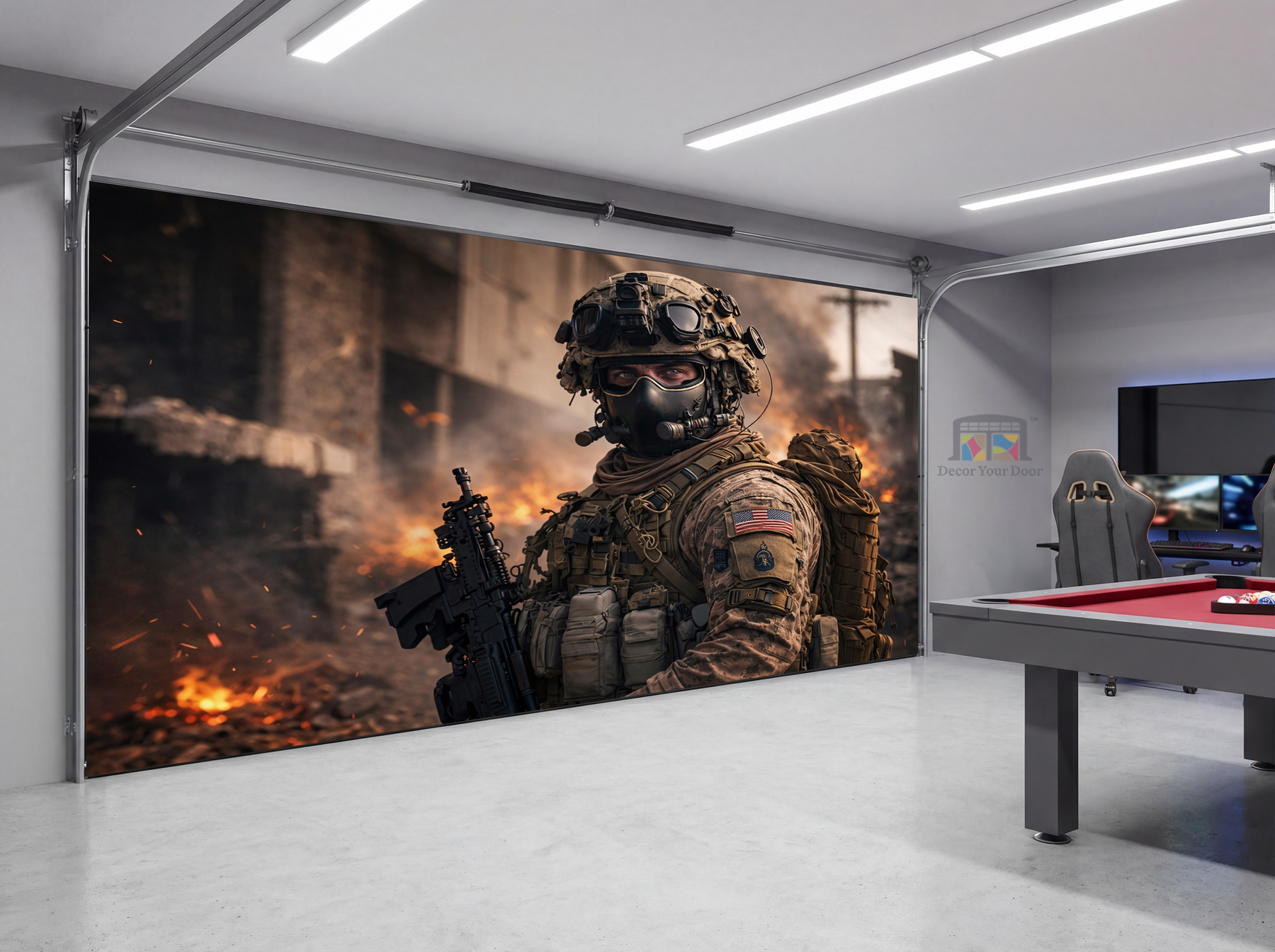 Urban Warzone Sentinel – Game Room Interior Garage Door Cover