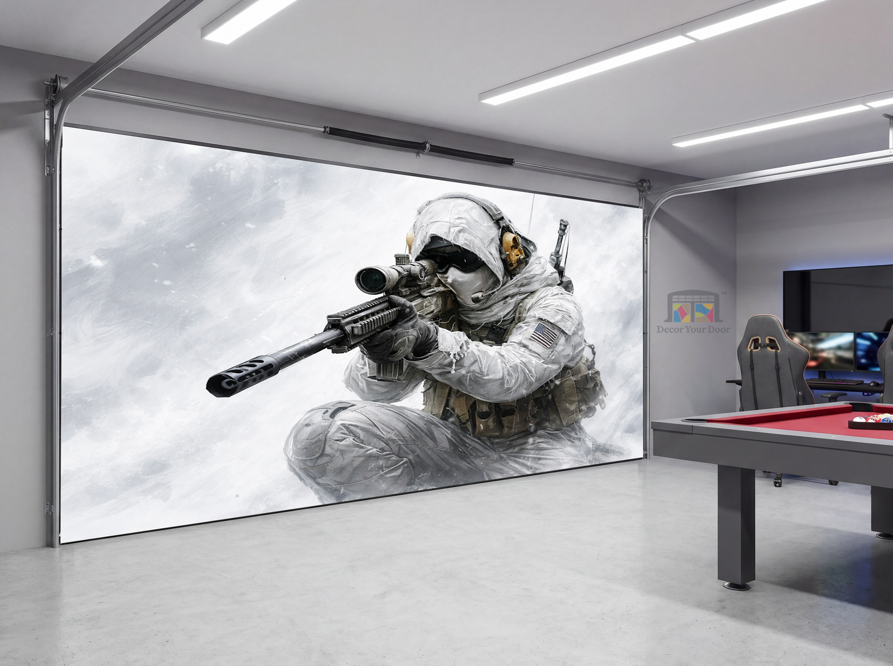 Arctic Marksman - Game Room Interior Garage Door Cover