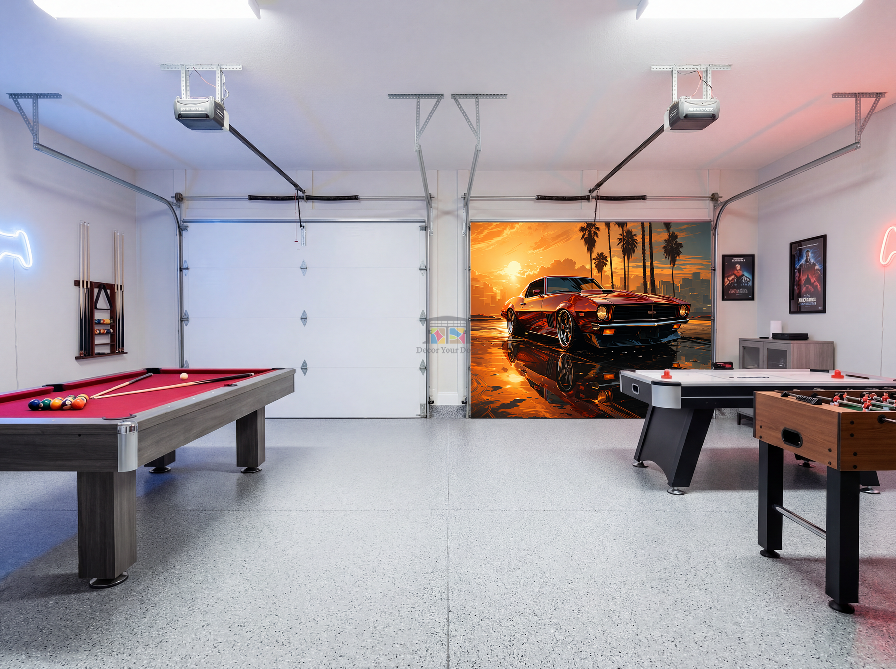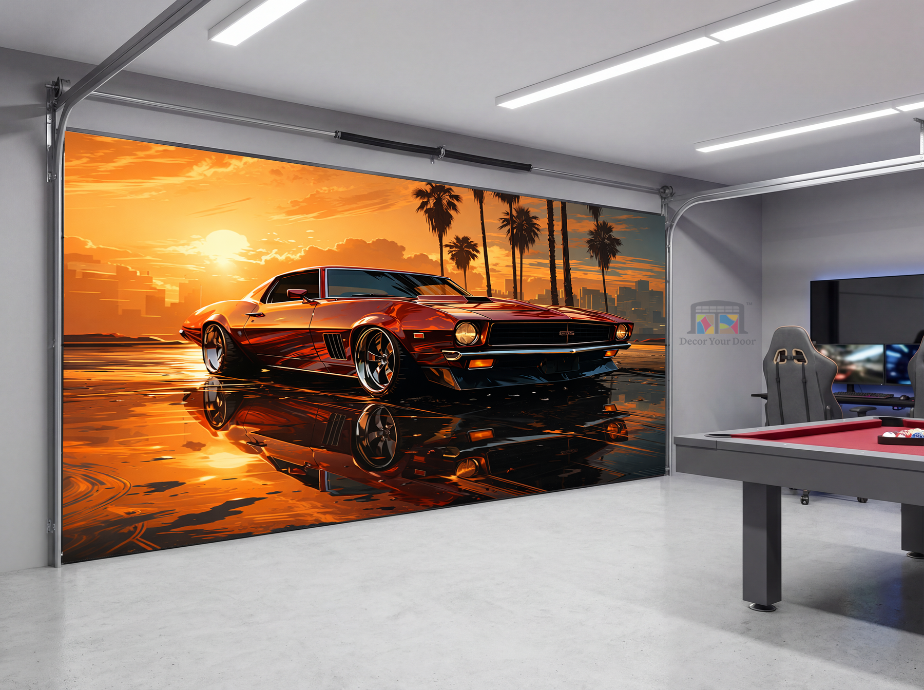 Sunset Muscle Legend – Game Room Garage Door Cover